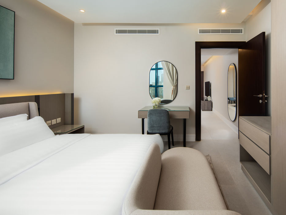 This room also boasts a luxurious bathroom complete with high-quality toiletries, a rain shower, and a deep soaking tub for ultimate relaxation. With its blend of elegance and functionality, the Deluxe Room creates a soothing sanctuary for guests looking for an upscale experience. Every detail has been carefully considered to offer an unforgettable stay, making it the perfect choice for those who appreciate the finer things in life.